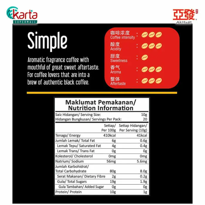 About Ah Huat Kopi O Without Sugar 10g x 20s Pack