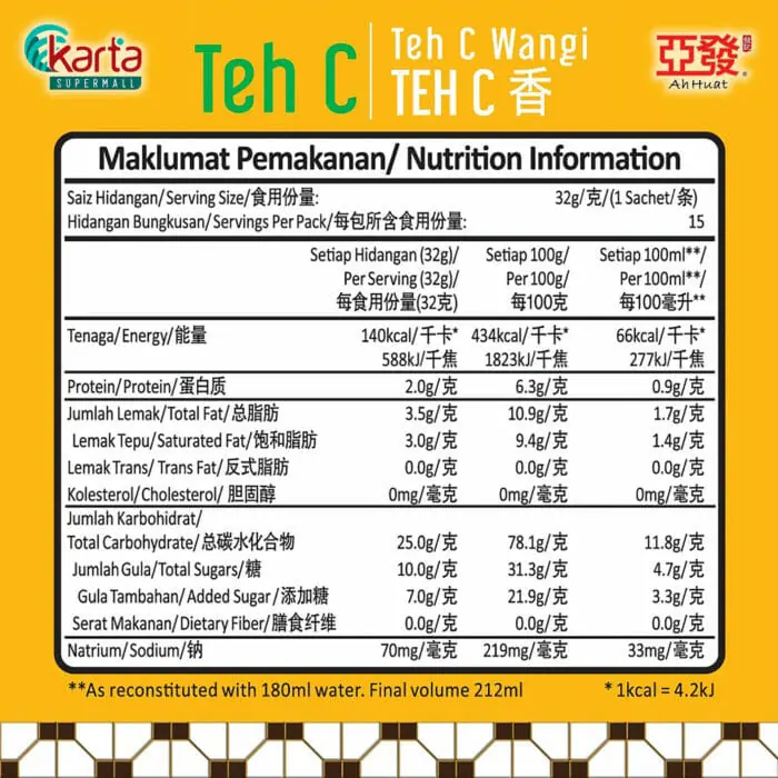 About Ah Huat Teh C Wangi 32g x 15s Pack