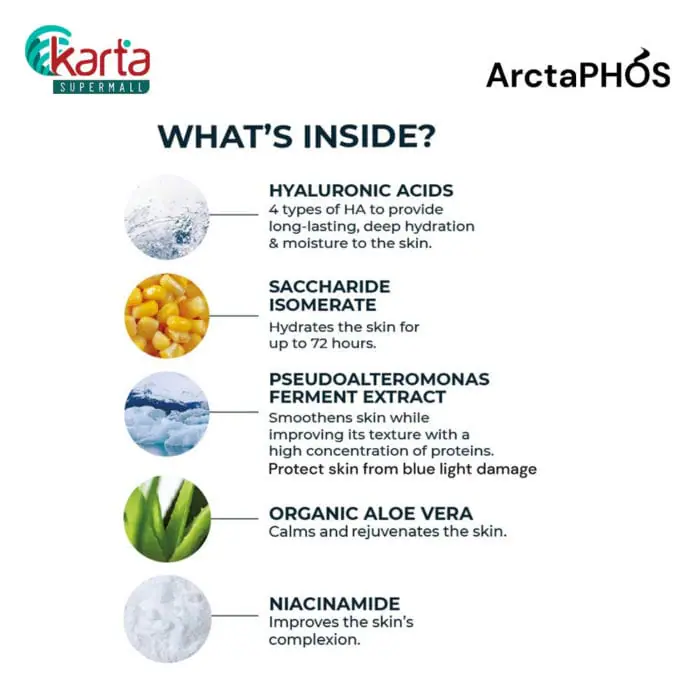 Key Ingredients: Pseudoalteromonas Ferment Extract (This innovative marine essence is sourced from deep cold water, and protect the skin from blue light damage, in addition to giving the skin natural glow.) Hyaluronic Acids Blend (4 different types of Hyaluronic Acids that deeply hydrate multiple layers of the skin and minimize wrinkle depth.) Aloe Vera Juice (A globally recognised ingredient for soothing damaged skin caused by daily stress and exposure to pollutants. It has also been proven to enhance cell proliferation for healthier looking skin.) Niacinamide (Vitamin B3) (A very stable vitamin which offers a wide range of skin benefits such as skin lightening, collagen stimulation and skin protection. We use the purest form of Niacinamide in our formulation to ensure its safety and efficacy on your skin.) Saccharide Isomerate (This ingredient is derived from corn kernels. It has been proven in vivo studies to hydrate the skin for up to 72 hours after application. It acts like a magnet that attracts moisture to the outermost skin layer. It also helps to calm stressed skin, which is essential for those in pollutant-rich environments.)