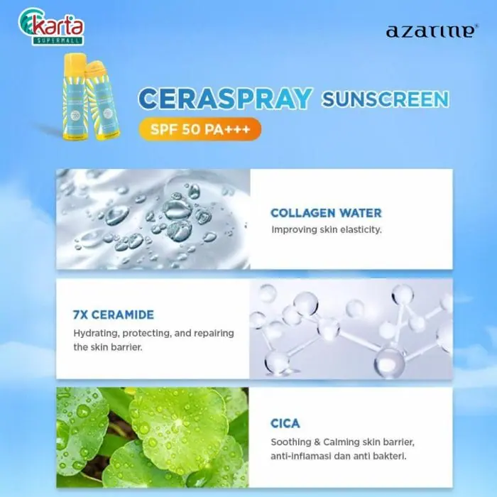 A practical sunscreen spray to moisturize and protect the skin from the bad effects of sunlight & bluelight radiation. Formulated with a combination of Collagen Water, 7x Ceramides and CICA on the skin and moisturizes so that the skin is supple and smooth. Sunscreen spray is easily absorbed & does not leave a white cast on the skin, so it is safe to use before and after makeup (Touch Up).