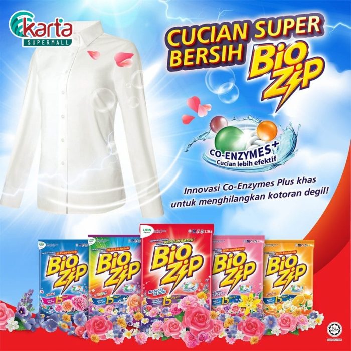 Bio Zip Colour Powder Detergent protects coloured fabric and keeps colours bright. Apart from that, it also efficaciously removes stubborn stains, especially on collar and cuffs to eliminates bacteria that will leave your clothes truly clean.