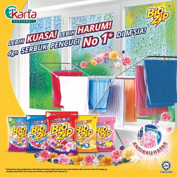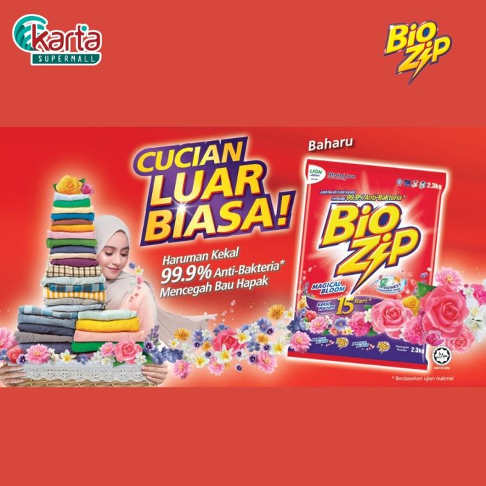 With its Advanced Formulation, Bio Zip powder detergent works extremely well on all types of clothes and fabric. It remains powerful cleaning effect even with cool water, whether machine or hand wash. The innovative foaming formula adds a touch of freshness that lasts for up to 15 days, effectively preventing musty odors. Enjoy the magical bloom of fragrance and the cleanliness of your laundry with Bio Zip Powder.