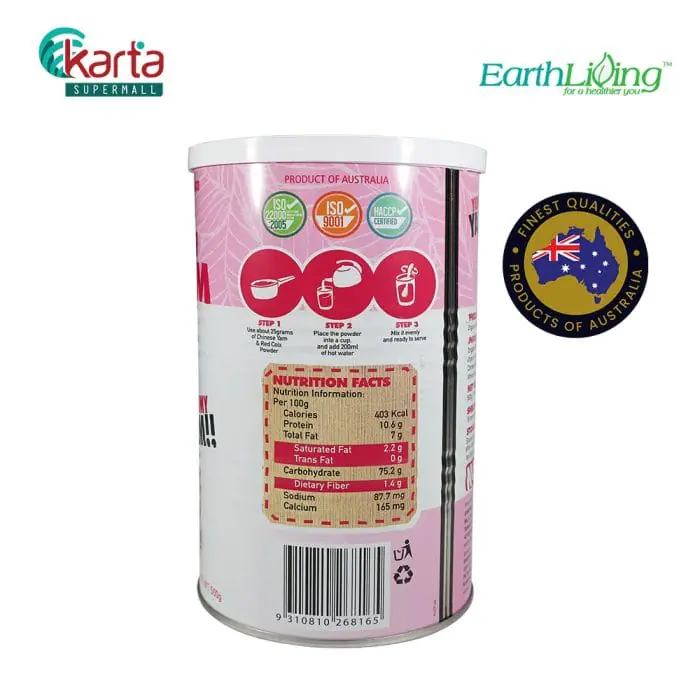 Earth Organic Chinese Yam & Red Coix Powder 500g (From Australia)