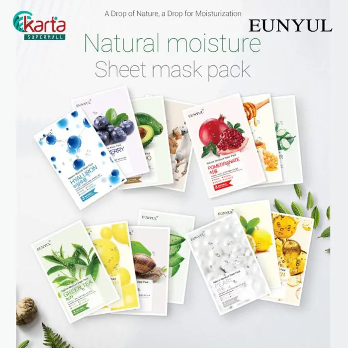 About EUNYUL Natural Moisture Mask Pack 22ml – SnailEUNYUL Snail Mask Sheet Pack drenches the skin with Snail Secretion Filtrate which provides extra nutrients and moisture to the skin.It immediately replenishes dehydrated skin and keeps the skin soft and moist. Specification: 22ml Skin Type: All Skin Type, Dry Skin, Normal Skin Benefits: Repairing, Hydrating, Anti-Aging, Wrinkles Skin Concern: Aging Skin, Dryness, Fine Lines & Wrinkles Directions of Use:1. The EUNYUL mask sheet helps to boost skin hydration and texture. Before applying the mask sheet, kindly apply the toner first after washing your face with a cleanser to remove any traces of make-up and impurities.2. You need to spread out the folded mask sheet evenly after taking it out from the pouch.3. You need to adjust your mask’s position according to your eyes, nose and mouth’s positions and then you may adhere the Mask Sheet firmly on the face.*Please keep the mask on for 15-20 minutes so that your skin can effectively absorb the active ingredients.4. After removing the mask sheet, you can tap on your face gently to allow the skin to absorb the remaining ingredients on the skin’s surface.5. Gently massage with fingers to enhance the absorption of the remaining essence into the skin. Cautions:1. Stop using it immediately if you experienced any allergic response or skin irritations. If you continued to use, the skin problem might get worse. Kindly consult a dermatologist or seek medical advice accordingly.a) Kindly seek medical help if you experienced any of the symptoms such as red spots, tumefaction, urtication, skin irritation and etc.b) The above symptoms may also apply when you are exposed to direct sunlight. 2. Don’t apply on wounds, eczema, dermatitis and so on. 3. Storage Requirementsa) Please keep the pouch shut after using the mask sheet.b) Please keep the product out of infant and chlidren’s reach.c) Please keep the product away from direct sunlight and high temperature exposure. IngredientsPurified Water, Glycerin, Propylene Glycol, Ethanol, Butylene Glycol, Sodium Hyaluronate,Vaccinium Angustifolium (Blueberry) Fruit Extract, Rubus Idaeus (Raspberry) Fruit Extract, Provence Rose Flower Water, Portulaca Oleracea Extract, Scutellaria Baicalensis Root Extract, Paeonia Albiflora Root Extract, Lonicera Japonica (Honeysuckle) Flower Extract, 1,2-Hexanediol, Camelia Sinensis (Green Tea) Leaf Extract (1,000ppm), Betaine, Carbomer, Triethanolamine, Allantoin, Xanthan Gum, Polysorbate 20, Ethylhexylglycerin, Disodium EDTA, Phenoxyethanol, Fragrance