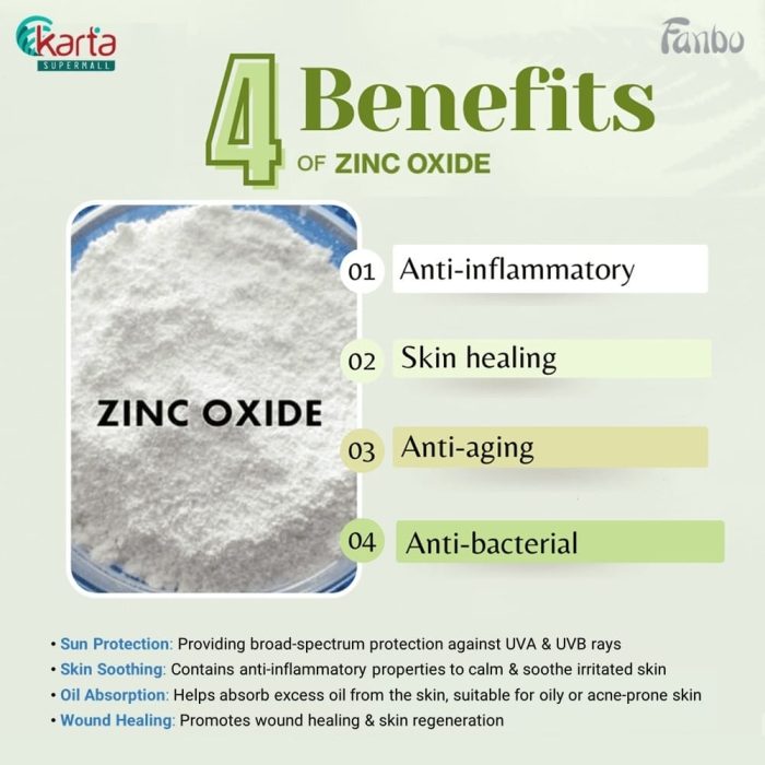 – Contains Zinc Oxide, a skin protectant and antimicrobial.