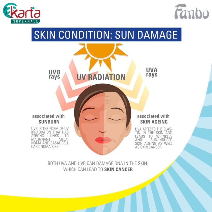 Both UVA and UVB rays in UV Radiation are capable of damaging the DNA structure in our skin, which can lead to SKIN CANCER.