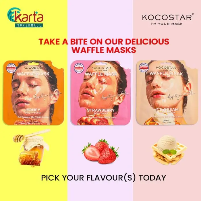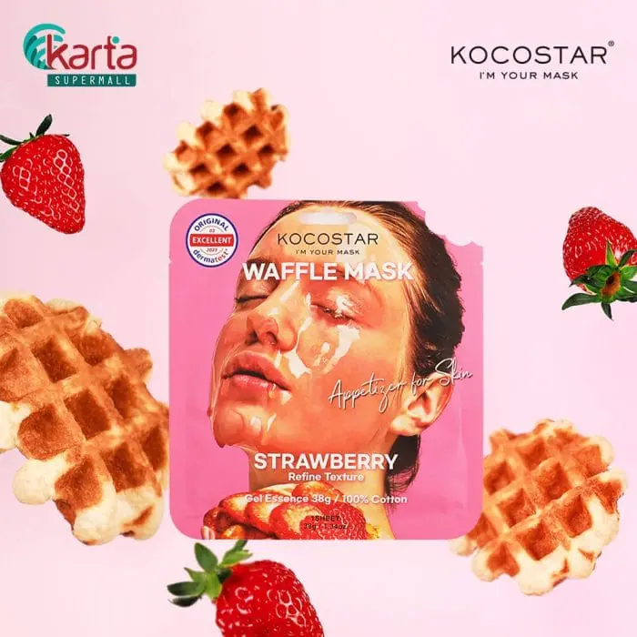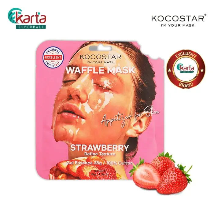 About KOCOSTAR Waffle Strawberry Mask 38gAbout Kocostar:KOCOSTAR is a mask specialty brand that delivers a quality at-home beauty care through hair-to-feet mask series. Launched in Korea by First Market Co., Ltd. in 2013, KOCOSTAR is steadily reaching toward the goal to be the Korean Cosmetic Star in the global beauty industry.KOCOSTAR believes everyone can be beautiful regardless of gender and age. Our belief is defined by family-friendly, witty masks that any member of a family – from grandparents to grandchildren – can use without hassle. Enjoy a fun, relaxing family time with our mask series.KOCOSTAR values your time, as well as your beauty. We understand the difficulty to set aside 20 minutes each day for beauty care. With our masks, continue your daily routine without any interruption, whether you are at home or in your office.Product Description:KOCOSTAR® Waffle Strawberry Mask is drenched with 38g of a gel-type essence that moistens the skin without leaving a sticky residue. The 100% eco-friendly pure cotton waffle sheet will hold the abundant gel in place (just as a waffle grid prevents the syrup from overflowing) until your skin has its fill.Made in South KoreaProduct Features:– Each Strawberry Extract: Refines and polishes the skin texture- Ginkgo Biloba Leaf, Ginseng Root, and Pearl Extracts: promote skin healtha. Breathable Waffle Sheet1. 3,600 micro-holes hold the gel essence in place2. OEKO-TEX STANDARD 100 certified3. Made with LOHAS certified organic cotton4. Pure cotton sheet adhere seamlessly to the skinb. Clinically tested1. Free of heavy metals2. Hypoallergenic3. Vegan certified sheetc. Patented design: Waffle packaging with a bite markd. 38g of Gel Essence1. No artificial coloring2. Lightweight gel essence that leaves the skin fresh3. There is enough essence for both the face and the bodyHow to use:Cleanse face and apply toner to even out the skin texture. Gently unfold the sheet and apply to your face. Leave on for 20 minutes and discard. Lightly tap your skin until remaining essence sinks in. No need to rinse.TIP: Do not forget to use the remaining serum in the pouch!Storage & Handling Measures:Store at room temperatures, keep product away from chidren and direct light, and use immediately after opening. Do not reuse.Ingredients:Water, Dipropylene Glycol, Methylpropanediol, Glycerin, 1,2-Hexanediol, Hydroxyacetophenone, Arginine, Acrylates/C10-30 Alkyl Acrylate Crosspolymer, Ammonium Acryloyldimethyltaurate/VP Copolymer, Polyglyceryl-10 Laurate, Polyglyceryl-10 Myristate, Xanthan Gum, Butylene Glycol, Sodium Phytate, Sodium Hyaluronate, Fragrance, t-Butyl Alcohol, Hydrolyzed Gardenia Florida Extract, Maltodextrin, Ginkgo Biloba Leaf Extract, Fragaria Chiloensis (Strawberry) Fruit Extract, Pearl Extract, Panax Ginseng Root Extract, Benzyl Benzoate