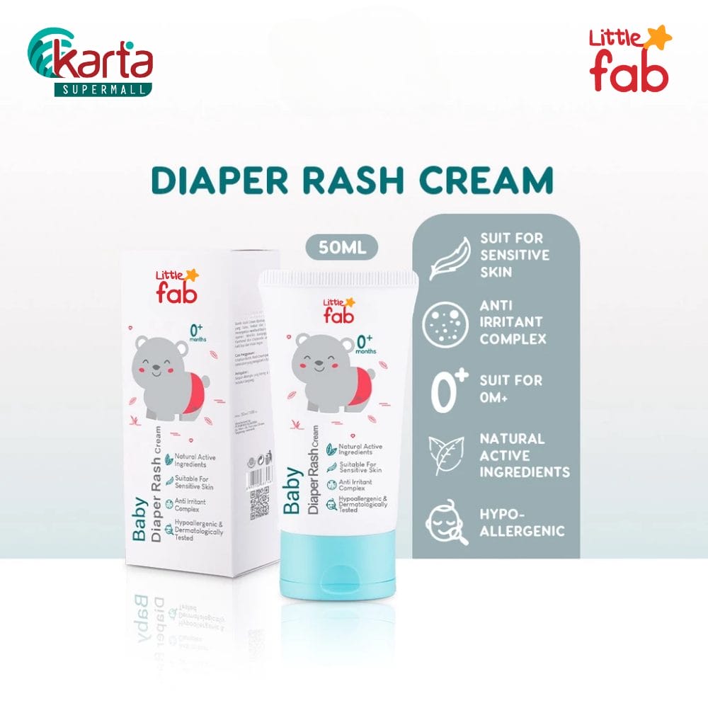 LITTLE FAB BABY DIAPER RASH CREAM is specially formulated with soft & delicate formula that make your baby feels fresh and comfortable when wearing a diaper. It contains Zinc Oxide, Chamomile, Licorice & Pro-Vitamin B5 to protect baby’s delicate skin against mild irritation causes by wearing a diaper.