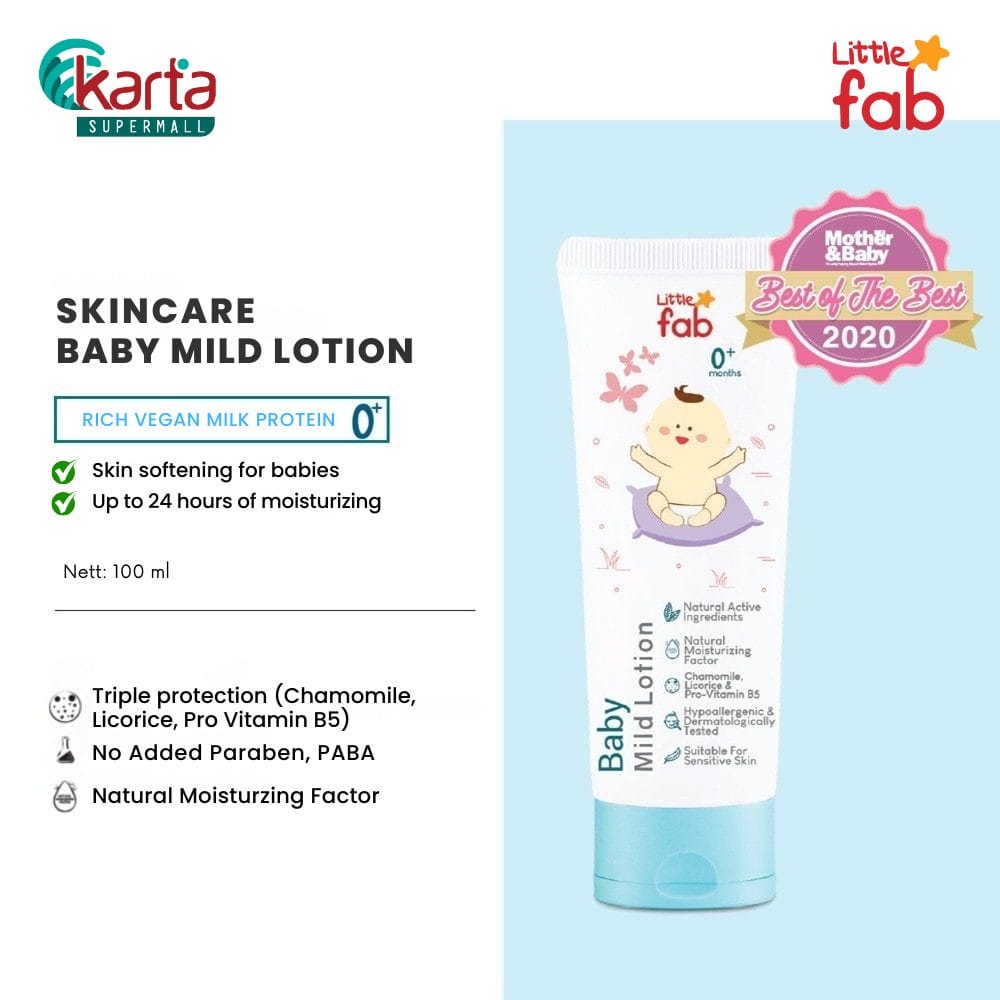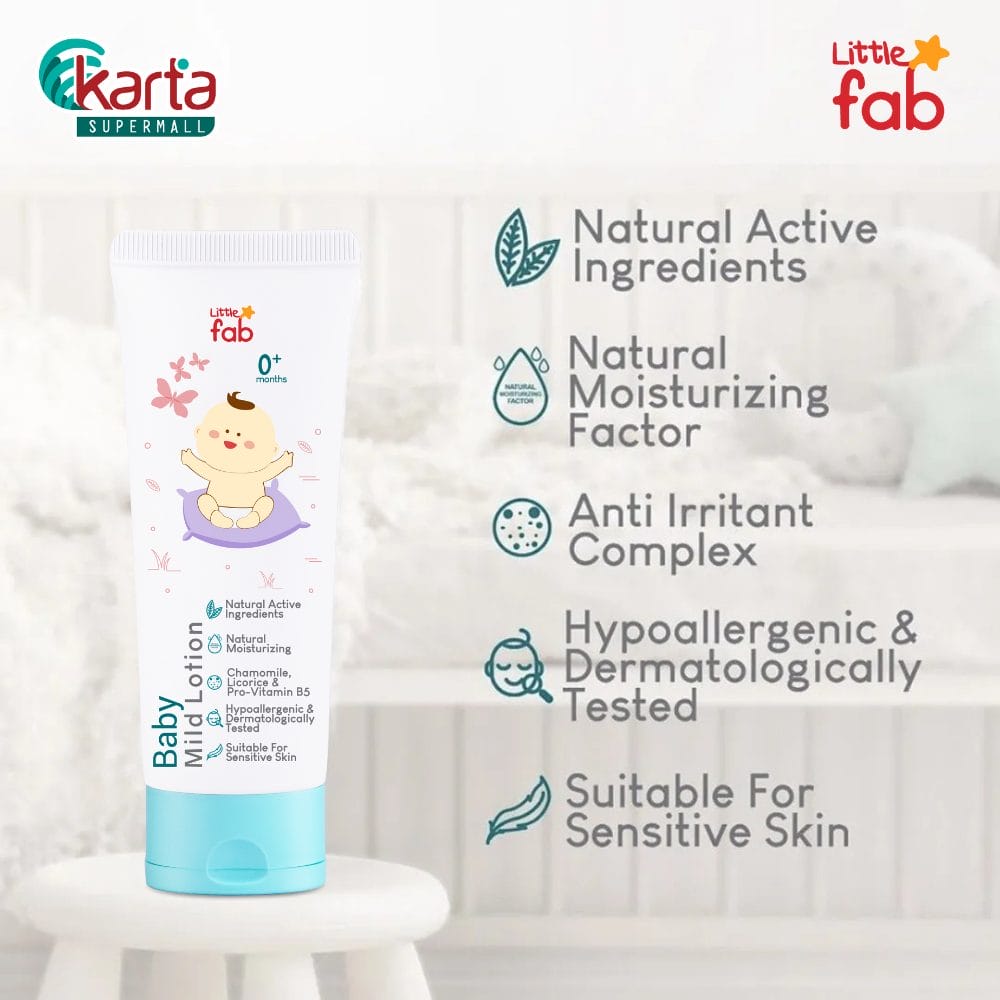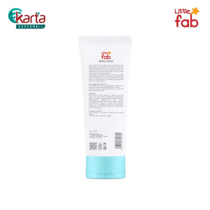 LITTLE FAB BABY MILD LOTION is a gentle lotion that can easily absorbs into the skin while concurrently leaves a soothing and refreshing scent that can last all day long. It is enriched with Milk Protein, Licorice, Chamomile Extract and Pro-Vitamin B5 that nourish and maintain baby’s skin moisture so that the baby’s skin becomes soft, supple and fresh.