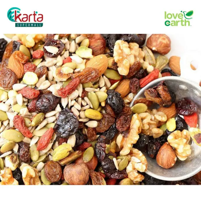 – 100 % Natural mixture of Nuts, Dried Fruits, and Seeds from Various Countries
