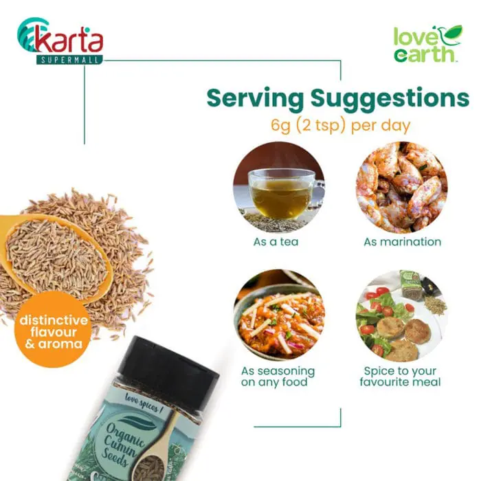 100% Organic Cumin Seed from India, GMO & Chemical Free. Good amount of Iron, Contains Vitamins A, C, E, Anti-aging properties. Promotes Weight Loss & Fat Reduction, Improves Blood Cholesterol.