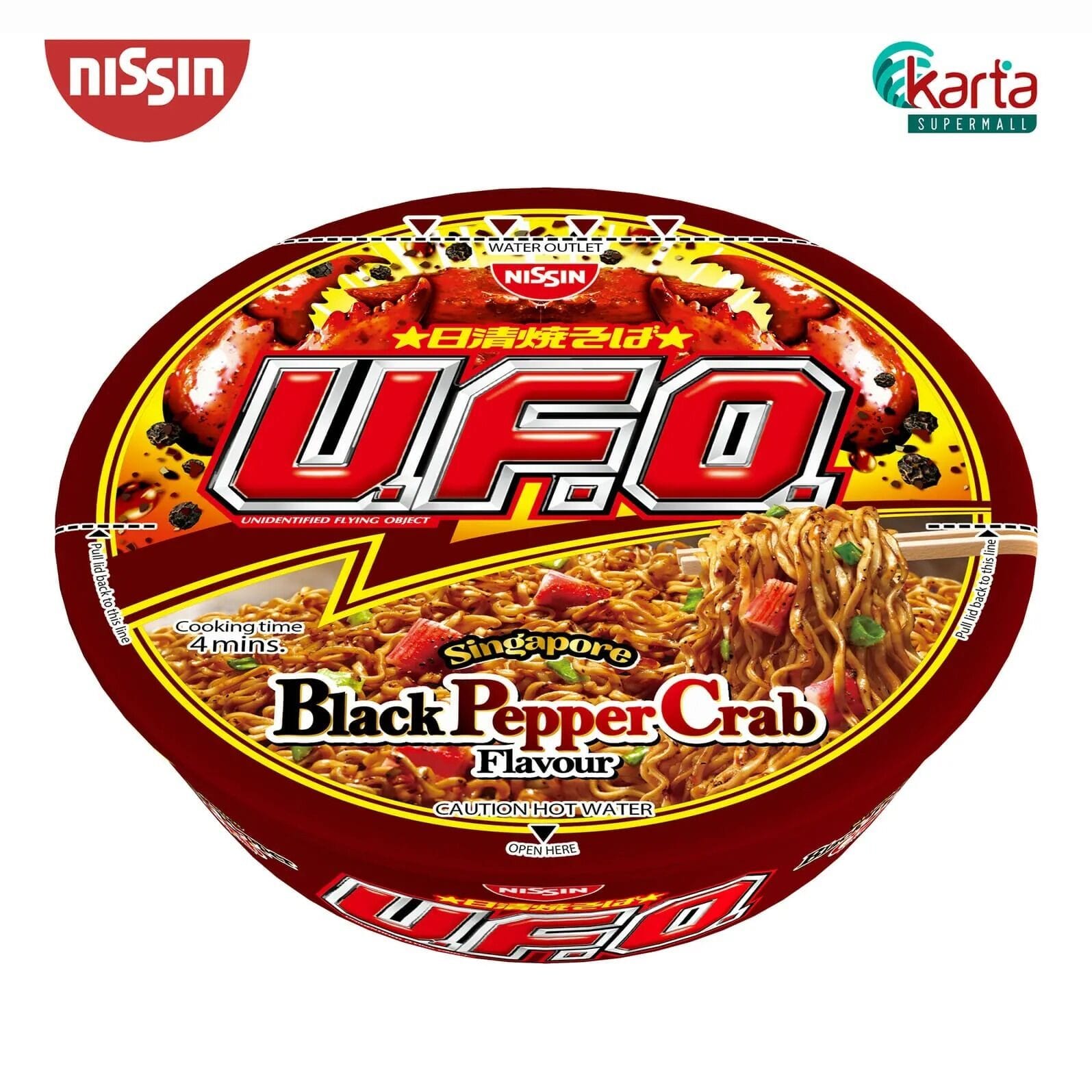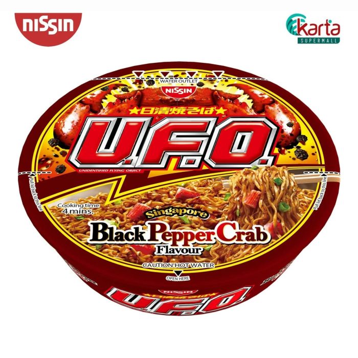 First developed in Japan back in 1970’s, now everyone in the world can enjoy the deliciousness of Nissin UFO Bowl Noodle Black Pepper Crab. Nissin noodles are chewy and absorbs flavour really well, while their seasoning is made with high quality ingredients to produce a flavourful taste for your enjoyment.