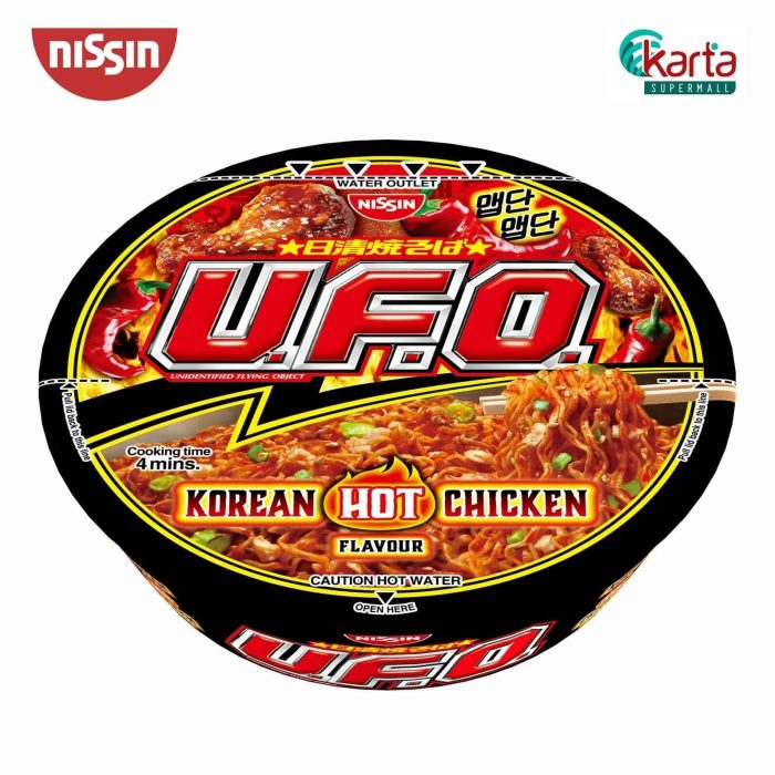 First developed in Japan back in 1970’s, now everyone in the world can enjoy the deliciousness of Nissin UFO Bowl Noodle Korean Hot Chicken. Nissin noodles are chewy and absorbs flavour really well, while their seasoning is made with high quality ingredients to produce a flavourful taste for your enjoyment.