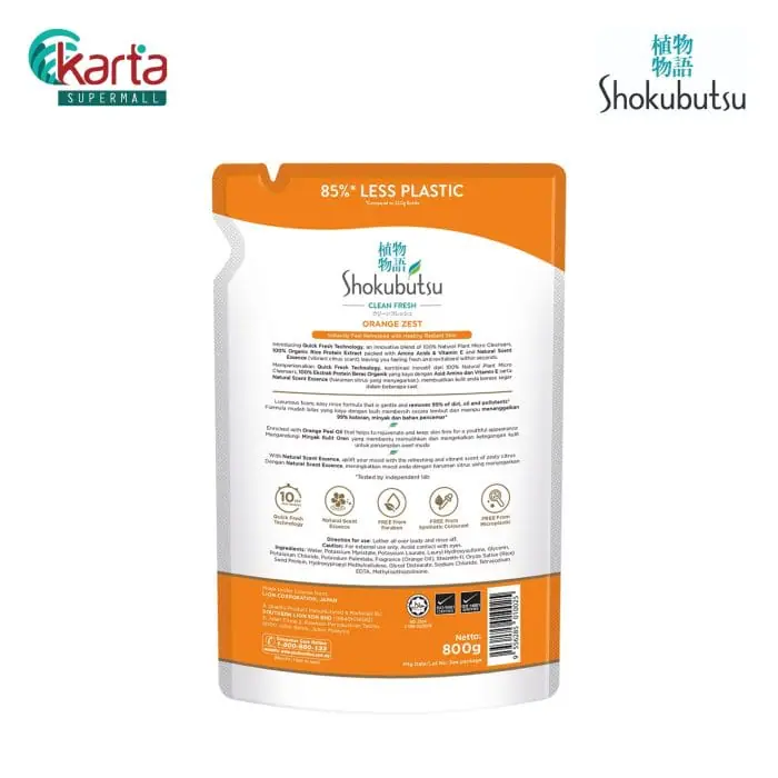 Shokubutsu Clean Fresh Shower Foam (Orange Zest) Refill Pack 800g